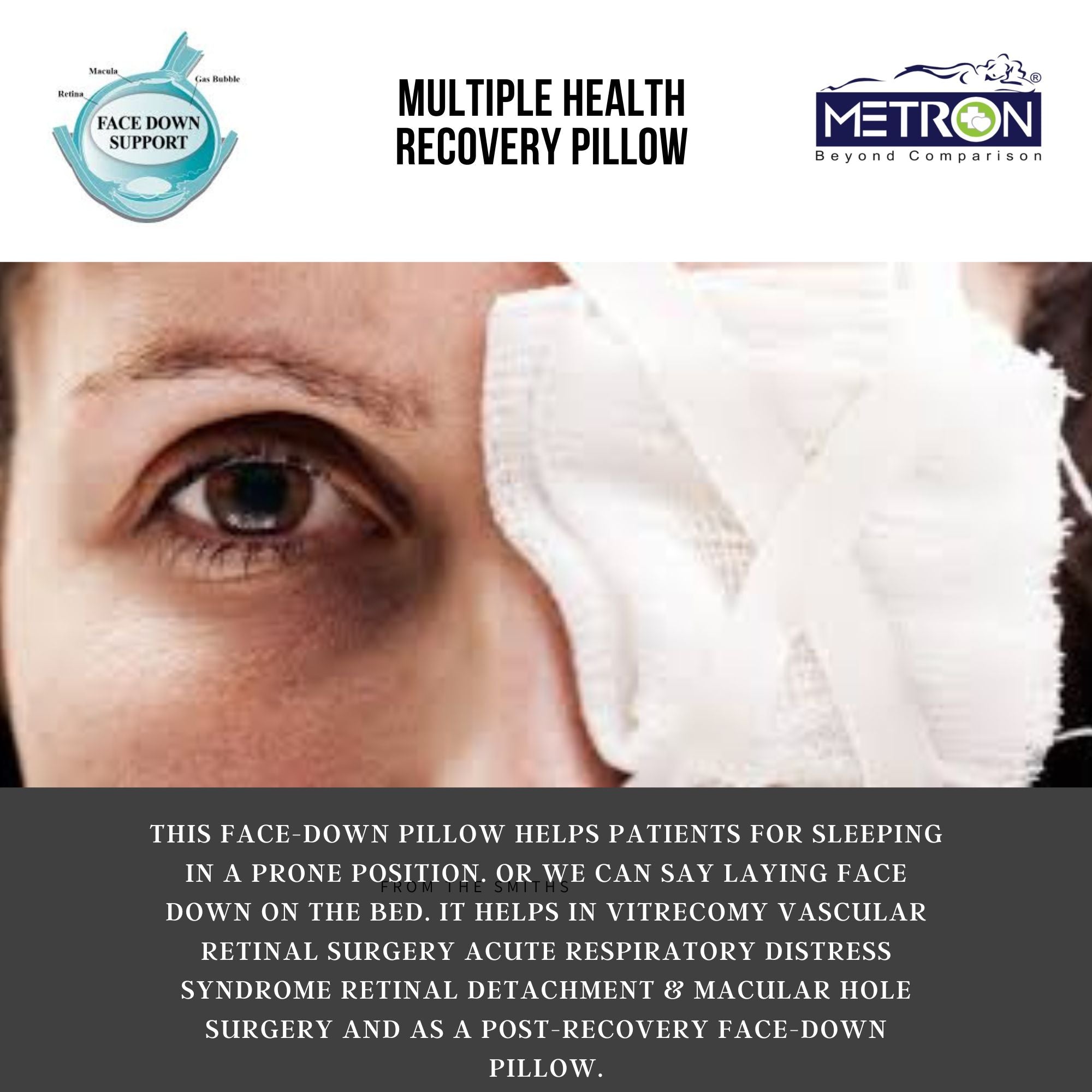 It is suitable for recovery after procedures like vitrectomy, retinal detachment, or macular hole surgery, where maintaining a face-down position may be advised.